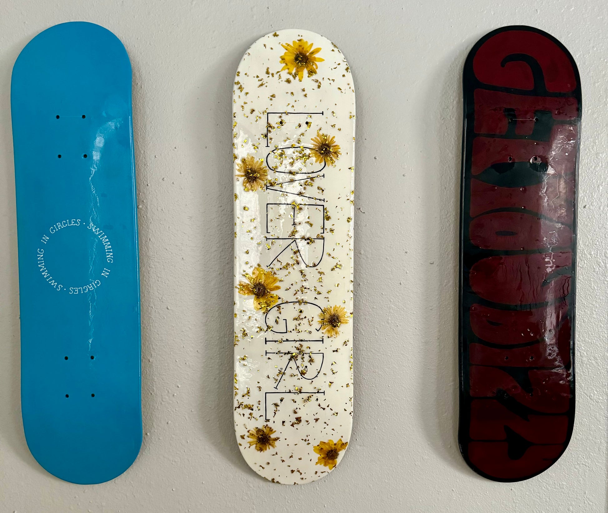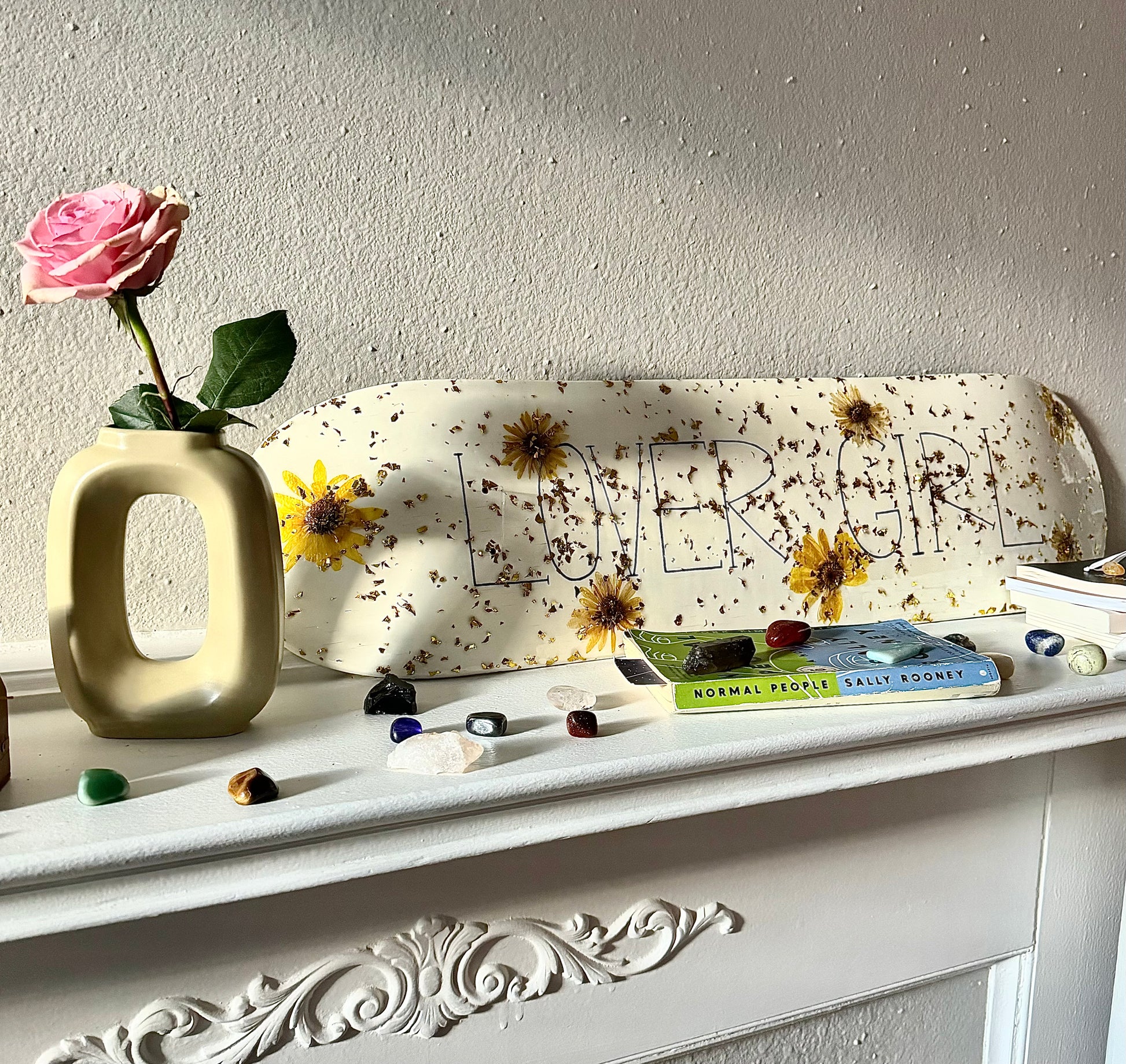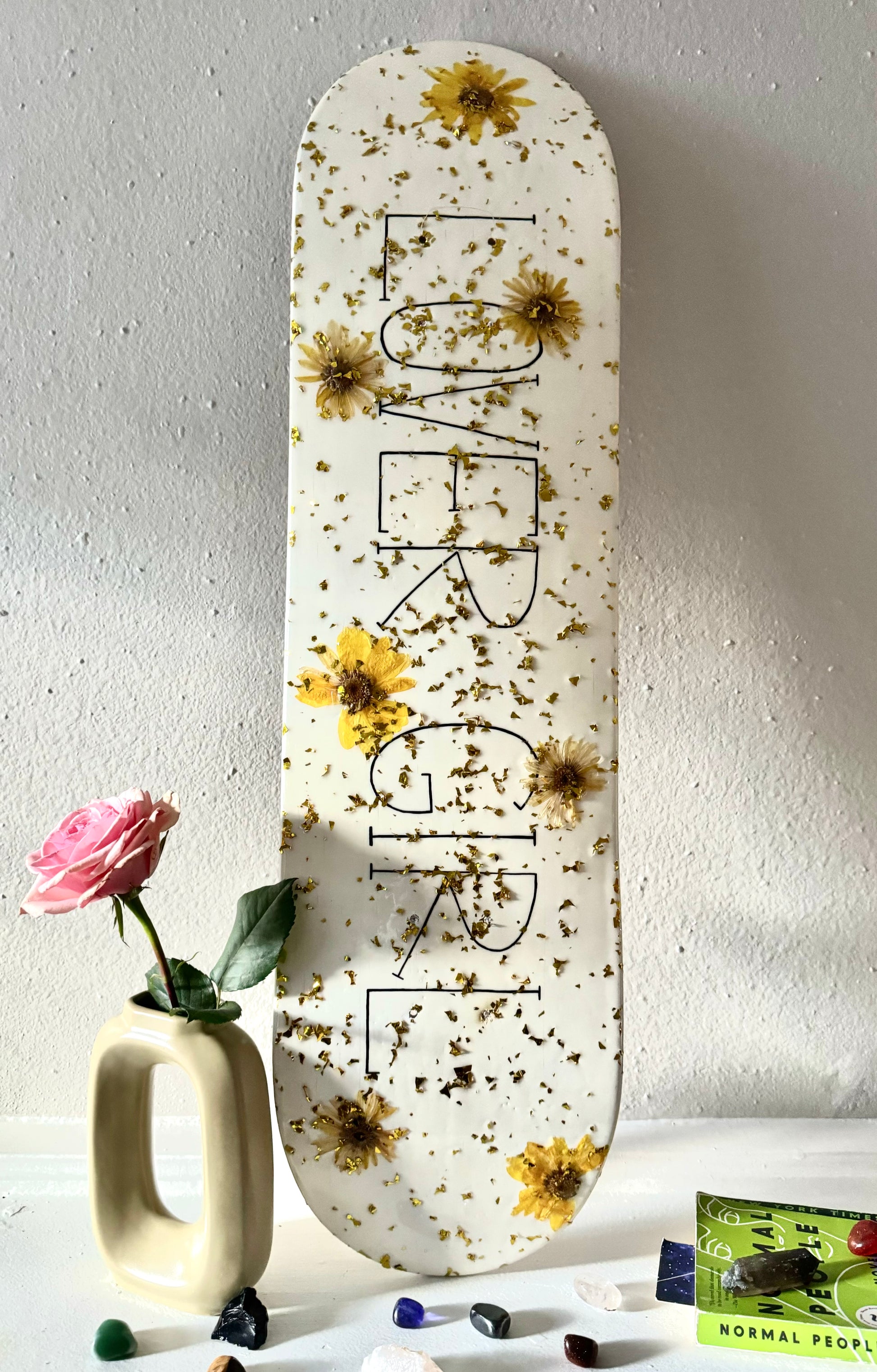 LOVER GIRL Resin Skateboard Deck Wall Art - Flower and Glitter Wall Hanging